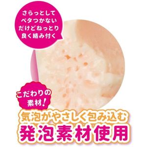 「スローオナニーがおすすめだよ!」って言われたよ。気泡が包む「発泡素材」のオナホールで、気持ちいい感じがするらしい。触ってみたら、ふわふわで弾力があって気持ちよかった!ローションもついてるから、じっくりと楽しめるみたい。身体もこころも贅沢になっちゃう、いやし系オナホールだよ。