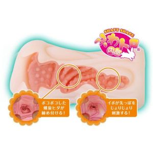 わたしのゆるまんホールは、フワフワでとろとろの素材でできてるよ!気持ちいい肉質感の『快感ギミック』で、V溝肉壁もあるんだよ!もちもち感がたまらなくて、一番深いところにはイボ地帯があるの♪すっごく柔らかくて、コシもあるよ!ローションもついてくるからね!たのしんでね♪
