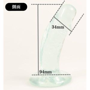 見て見て、クリアのディルドができたよ!国産の材料を使って丁寧に作ったから、誰でも安心して使えるんだって!触ってみたらぷにっとやわらかくて気持ちいい感じで、形もリアル!棒は94mmで、先端の一番太いところは34mmだよ。初めての人でもアナルでも使えるから、ぜひ試してみてね。