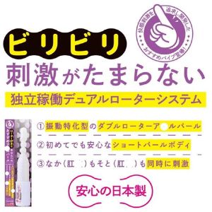 ビリビリしてる?ローター好きなあなたにオススメなア●ルバイブができたよ!デュアルローターシステム搭載で最高の振動が味わえるよ!パール先端部と根●部分にマイクロローターを内蔵してるから、なかとそとを同時に刺激できるんだって!2つのローターは別々にコントロールできるよ。初心者でも安心の細身タイプで、パール直径は16.5mm。日本製で単4電池×3本付きだよ!
