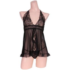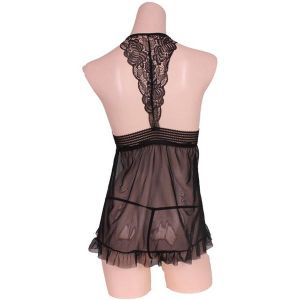 フリルとレースで可愛さ増しベビードール&Tバックセット ブラック