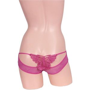 ねえねえ!このグッズ知ってる?可愛いバタフライのOバックショーツだよ!ヒップの隙間にバタフライが止まってるんだよ。見て見て!キュートでしょう?お花の柄のネット素材が、身につけてるのを忘れちゃうくらい気持ちいいんだよ。しかも、おそろいのクロッチもついてるから、女の子に嬉しい作り心地もバッチリなんだよ。ね、可愛いでしょう?欲しくなっちゃうよね!