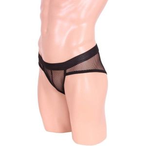 わたし、このグッズ紹介しちゃうね!「逞しさを強調メッシュフルバック ブラック」っていうグッズなの。アダルトグッズの中でもお兄ちゃんたちが好きそうだよ♪ なんでかって?それは、このブリーフが粗目のストレッチ素材だからお兄ちゃんの逞しさをバッチリ強調してくれるから!