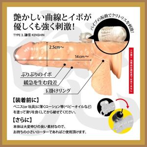 こんちゃーす!みんな~!新しい武士の服「ソフトラバーサック 武者震い TYPE.3 謙信」のすごいポイントを紹介するよ!まず、内壁にぴったりフィットして感じる新しいデザイン!さらに、ミニローターがセットできるから、クリとヴァギナを一緒に刺激しちゃうぞ!このサックは伸びやすい素材でできているから、誰でもフィットするよ!さらに、ローターやバイブにも装着できるから、色んな刺激を楽しめるよ!他にも、全身イボの「幸村」と大ブリイボの「信長」も発売してるよ!オトコたちのために作った商品だから、すごくいい商品なんだよ!