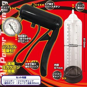 ハロー、みんな!「マックスポンプG」は、アダルトグッズの中でもとっても強力な吸引力で、毎日のトレーニングにぴったりなんだよ!この商品は、手で持って簡単に使えるグリップ式の吸引力で芯から強く、たくましくしてくれるんだ!シリンダーにはメモリがついていて、どれだけサイズアップしたのか一目瞭然だよ。さらに、圧力ゲージもあるので、管理しやすくて安心だね。商品のサイズは、内径57mm/全長210mmだよ。