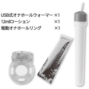 「すごいよーー♡ 小さな口まで作って、たくさんの小さなボコボコもついたの! お色もすごくリアルだよ!ヒートスティックはUSBにつなぐだけで、5分で48℃になるの! そしたら人肌みたいな感じがして思わずトキメキちゃうの♡ それに、リングローターっていう電動もついてるから、もっと気持ちいいの!すっごいセットだね!」ホール/USBヒートスティック/リングローター/ローション12mlが付くよ♪