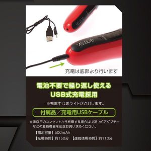 赤いLEDがついてるから、暗くても手元が照らせて便利!マンションとか団地に住んでる人にもおすすめなんだって。それにコードレスだから、どこでもどんな角度でも自由自在に使えるの!