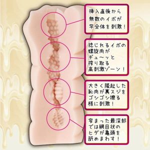 内部は捻れたイボ螺旋が優しく愛撫してくれるの。そして最深部には大きく隆起した恥肉があるから、亀頭までしっかりと刺激してくれるのよっ!
