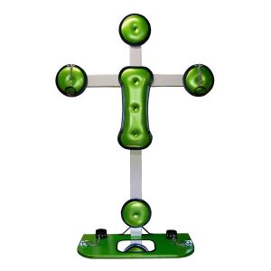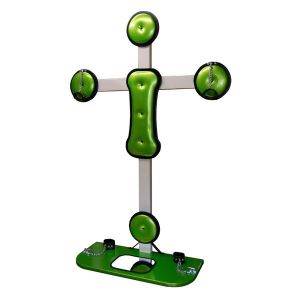 すごい拘束器具があるんだよ!十字型で壁に付けるやつ!座って手足を縛ったり、ロープをつないで縛り付けることもできるんだ。恥ずかしいときは足元のカガミを見てみてね。スペースも気にせずに使えるから便利だよ!