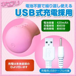 すごい振動がして、小さいんだけどすごく良い!膣とアナルどっちでも使えるうれしいサイズ!凸凹が気持ちいいし、ポイントを攻める振動と回転があるんだよ。USBで充電できて、約30分で充電できるんだ。ずっと使えるのは約20分だけど、使い方や製品によって多少違うかも。USB端子用のAC端子は別に買わないとだめだよ。