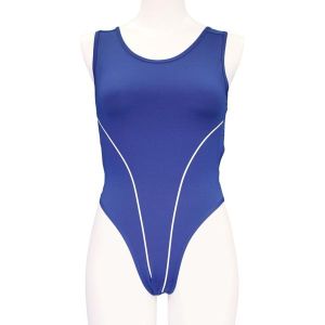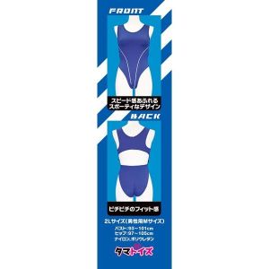 この水着の特徴は、伸縮素材抜群の競技用ハイレグタイプ!ぷりぷりのおしりがおばけみたいに可愛く見えるかも?!サイズは2Lサイズ(男性用Mサイズ)で、ブルー色のおめかし。落ち着いた色だからどんな場所でも浮かなくてバッチリなのがいいね!
