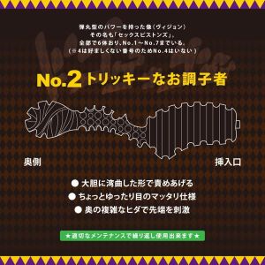 このNo.3のすごいところは、形が曲がっているからじゃないかな。ゾリゾリ刺激があってすごく気持ちいいんだよ。さらに、奥深くまで届くおしりの部分も、ちょっとゆったりめのマッタリ仕様で、絡み合う複雑なヒダがあるんだって。ひとつひとつのパーツが丁寧に作られているから、使うたびにとっても楽しいんだよ!