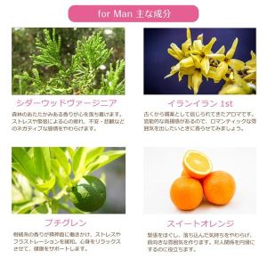 このMake Love for Manには、全部で8種類の精油がブレンドされているんだ。シダーウッド・ヴァージニアやイランイランなど、男らしい木の香りと華やかな花の香りが混ざり合って、とってもいい匂いになってるんだよ♪