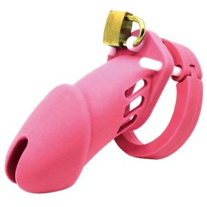 このモノ、ね、パーツがいっぱいあって、全部組み立てると貞操帯になるの。だから、サイズもいっぱい選べるのよ。南京錠もついていて、ほんとにしっかり管理できるの。本体はやわらかいシリコン素材で、軽いから普段使いにもぴったり。しかも排泄口もあるからトイレも行けるわ。初めての人にもおすすめよ!