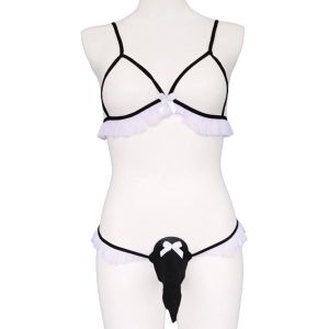 お姉ちゃん、見て見て!とってもエッチなセット見っけた!男の人でも使えるんだって!ほら、みてみて、オープンタイプのおち●ちんをはめるブラだよ!伸びる生地でやさしく玉をギュッとしてくれるんだって!しかも、サイズも問わず使えるよ!かわいいレースのホワイトだから、お姉ちゃんも絶対気に入るよ!