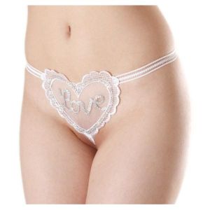「Love」って書いてあるハートモチーフがめっちゃキュートなんだよ。それに、ローライズでGストリングショーツ形式だから、セクシーさもしっかりアピールできちゃうんだ♪
