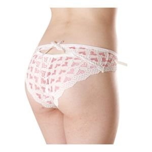 すごい下着があるの!すごいエッチで、お姫様みたいに優雅な感じ!誘惑したいときや熱くなりたいときにぴったり!「ダブルラインサイドレースオープンショーツ」というのは、ローライズでケミカルモチーフが付いたGストリングパンツ。後ろに大きなリボンがついてて、可愛い!
