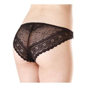 すごい下着があるの!すごいエッチで、お姫様みたいに優雅な感じ!誘惑したいときや熱くなりたいときにぴったり!「ダブルラインサイドレースオープンショーツ」というのは、ローライズでケミカルモチーフが付いたGストリングパンツ。後ろに大きなリボンがついてて、可愛い!