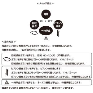 操作も簡単だよ!ピストンと回転はそれぞれ個別のボタンで操作できるんだ。しかも、10パターンのピストンと回転を組み合わせて選べるから、いろんな快感を味わえるんだよ♪