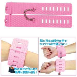 ねえねえ、この「シリコーンロックカフス ピンク」って知ってる?手枷だよ!でもね、この手枷はシリコン100%素材でできてるんだって!だから、めっちゃ柔らかくて装着するときもそんなに痛くないの。そして、南京錠でロックするから、自分で取ることができなくて、安心して使えるんだって。うんうん、大事なことだよね!手首に巻いて長さを調節できるから、男性も使えるし、ベルト長さも十分あるから、キミの手でも装着できるよ!ちなみに、ベルト長さは325mm、チェーン長さは120mmだよ!
