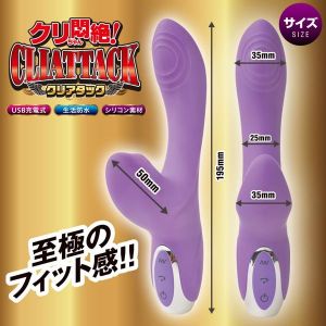 クリちゃん大興奮の新しいグッズが登場したよ!「クリアタック」っていうんだけど、指でクリをいじっているみたいに気持ち良くて、夢中になっちゃうの!子機部分には3段階のスピード調節ができるボールが内蔵されてるから、自分好みの振動でイクことができちゃうわ。そして、7段階の激しい振動がGスポットを狙い撃ち!さらに、全体に振動が広がって、最高のフィット感を味わえるの。電源はUSBで充電できて、フル充電で1時間くらい使えるよ。使用状況や環境によって変わることもあるけど、お手入れも簡単だからずっと使えるよ。クリちゃんを満足させるなら、絶対に「クリアタック」を使ってみて!