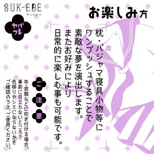 ねむる前に、ヤバイフレグランスをワンプッシュ!これで夢がきれいになるんだよ。においをかぐと、妙な感じするけど、すごくいいんだ。いつでもどこでも使えるよ。枕やパジャマにかけるとね、すごくいい夢がみれるんだ。でも、服にかけるとしみるかも、確認してからつかおうね!