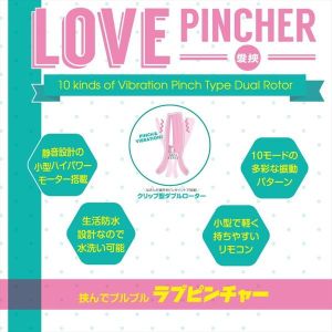 ねぇ、ハニー!よかったら、ラブピンチャーっていうおもちゃ知ってる?乳首とか敏感なところもピンチ出来ちゃうんだって!しかもさ、乳首ローターとかよりもクリップ部が超小型だから、ぐーんと軽くなっちゃった!パワフルなモーターも搭載されてるから、敏感なところにも使えるの。さらに、いろんな振動パターン(10種類!)が選べるから、自分に合ったモードになるはずだよ!あと、防水性もバッチリだから、使った後は洗って、きちんと保管しておけるんだ。もう、ただのローターじゃ物足りなくなっちゃったって人にこそおすすめしたいおもちゃなんだよ!