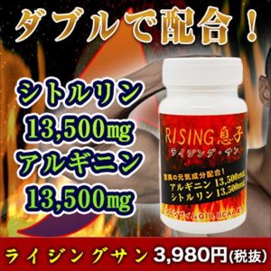 「ライジング息子」は、スポーツ選手や格闘家のようなカッコイイ男性の体力を手に入れることができるんだよ!「シトルリン」と「アルギニン」がたっぷり入っているんだって♪