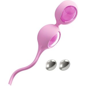 お兄ちゃん!これすごいよ!L1ラブボールズよりちょっと小さくなったんだって!ドイツのレッドどっとでざいん賞ももらったんだって!すっごくきれいなデザインなのに、もっと使いやすくなったんだって!ボールが2つで1組になってるから、重さを選べるからトレーニングが楽しいんだよ!最初は軽いやつから使って、慣れてきたら重いのにチャレンジ!引きしめ効果バッチリだよ!すっごく魅力的なボディが手に入るよ!この商品は6/5に発売だよ!