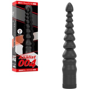 「アナリスト004」は、サイズが段々と大きくなる三角形の8連タイプなんだ!だからね、中を傷めないように緩やかに作られた角が、内壁を刺激して気持ち良くなれるんだよ!入れるときはスムーズで、引き抜くときに引っかかる感覚がたまらないんだ!
