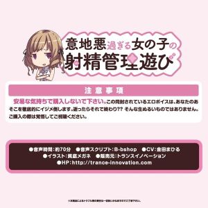 うわー、挑戦者募集中だって!この音声はB-bishopさんが書いたんだって!めっちゃM男さんたちを諦めさせちゃうんだって!えっ、残酷な女の子に搾り取られる危ない快楽ってどういうこと?視聴者さんを限界まで追い込む音声ってすごいね!でも、この音声は商品化したものなんだって。約70分の射精管理遊びだよ。オナホも用意してね!