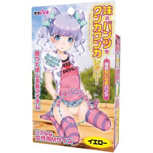 わたし、お姉ちゃんから聞いたんだけど、妹のパンツってすごくいいにおいがするんだって!それで、そのいいにおいがついたアダルトグッズがあるの!それが「妹のパンツをクンカクンカしたい!イエロー」だよ!