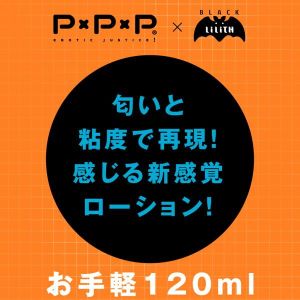 ピーエックスピーエックスピーとリリスさんのコラボで、においとねばりで再現した、感じるローションが出たの!対魔忍シリーズからの、紫の愛液ローションだよ。任務後のお風呂で使うと、清楚なにおいで気持ちいいから、おすすめだよ。対魔忍紫のホールと合わせて使うと、もっとよくなるかも!でも、ローションが白く濁ることがあるけど、問題ないよ!