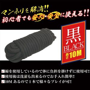 マンネリ打破!初心者OK拘束ロープ。10mなので、色んなプレイで使えるよ。綿使ってるから体に優しいよ。洗えるから手入れも楽ちん。緊縛師の青山夏樹さんも推薦してるから、安心・安全に使えるよ。