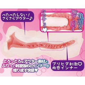 あたしのおすすめは『とろなまめるてぃ 茜』だよ♡ このオナホは、外側がとってももちもちふわふわの感触で、中は刺激たっぷりの2種類のインナーが入ってるんだ。一つ目の『茜』は、アゴダラシタイプで、亀頭をガシガシ刺激しちゃうんだ。中の形状も、ギュッと締まって気持ちいいんだよ!二つ目は『藍』という名前で、こちらはなんとリブ状の凸凹が入っていて、入口がとっても肉厚でリアル感も抜群だよ。このオナホはパッケージがつながっているので、2つ買って並べて遊ぶのもアリだね!ぜひ、『とろなまめるてぃ 茜』でとろなまオナニーを楽しんでみてね。重さも軽いので、お出かけにも持っていけるよ!