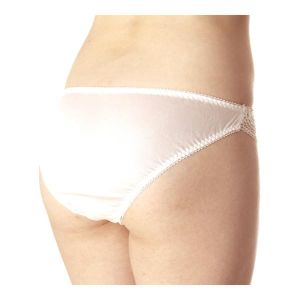 まずね、清楚なオフホワイトのお色がとっても素敵なんだよ。そして、その中に可愛らしいレースが付いてるんだ!もうひとつ大事なポイントは、後ろがフルバックなんだよ。これでおしりが可愛く見えちゃうね!
