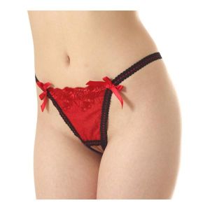 すごい下着があるの!すごいエッチで、お姫様みたいに優雅な感じ!誘惑したいときや熱くなりたいときにぴったり!「ダブルラインサイドレースオープンショーツ」というのは、ローライズでケミカルモチーフが付いたGストリングパンツ。後ろに大きなリボンがついてて、可愛い!