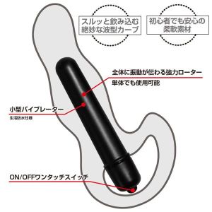 「新しいおもちゃを買ったよ!ビギナーでも大丈夫で、イージーに出し入れできるんだよ。すごく柔らかくて、肌にぴったりで気持ちいい!波形があるから、感じたいところにピンポイントで刺激できるんだって。一人でも二人でも、楽しめるよ!」全長は130mmで、バッテリーが付いてるのも嬉しいね。