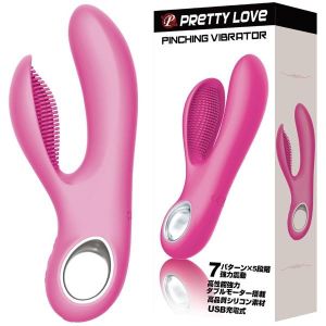 えーっと、こんにちは♪今日は「プリティラブ ピンチングバイブレーター」という素敵なおもちゃのご紹介!まず、このおもちゃのいいところは、強力な振動で下のお部屋を刺激してくれるところ!V字のところにピッタリフィットして、ダブルモーターからの振動が一生懸命お願いします。あと、クリトリスをおおいかぶさる大きめのバイブには、快感ブラシがたくさんついててとってもエキサイティング!さらに、振動は7種類、それぞれ5段階に切り替えができるので、自分好みの振動強度を探せちゃう♪ちなみに、コード付きのUSB充電式で、使いやすいのもポイント高いですよ!医療用グレードのシリコンを使用して、身体にやさしい使い心地もgood!水には濡れても大丈夫な水防設計にもなってるから、お風呂でも使えます。さりげなく静かに振動するので、外出先でも簡単に使えちゃいます♪うふふ、こんなかわいいおもちゃがあったら、ちょっとセクシーな気分になっちゃいますね!
