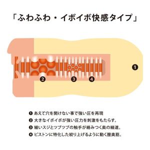 入り口はビラビラが大きくて、とってもいやらしいデザインになっているんだって。中は突起がたくさんあって、肉ヒダもあるから、とにかく気持ちいいんだって!突起で刺激されるのに、肉ヒダがぐいぐい圧迫してくれるから、すごく強い快感を味わえるんだって!