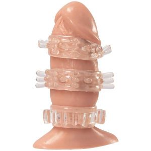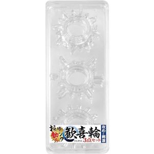 わたしも買ったよ!『歓喜輪3点セット』っていうの!3種類の形があって、効果も選べるんだって!1つ目は長い短い突起がランダムにあって刺激がトリッキー!2つ目はたくさんのやわやわ突起で膣内ブラシできるよ!3つ目は肉厚で男をキープしつつ、相手にエッジのあるハードな刺激ができるんだって!!