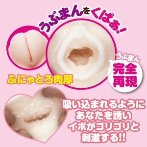 ねぇ、このおま○こ、すごく柔らかくてぬるぬるしてるんだよ!しかも突起や蛇腹がないから、ほんとうの女の子のお肌みたいに気持ちいいんだ。デリケートなところも優しく包んでくれるから、とっても気持ちいいんだよ。縦に隆起してるところもすごく刺激的!本当の感触に近いから、イヤらしい気分になるね!