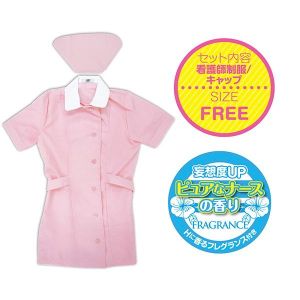 この「ピチピチ看護師」の良いところは、白くて眩しい白衣があって、新人看護師風の格好ができるってこと!それにサイズフリーだから、大人でも子どもでも着せられるんだよ。それと、妄想が膨らんじゃうヒミツの匂いがしちゃうんだって!