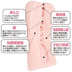 ねぇ、このおま○こ、すごく柔らかくてぬるぬるしてるんだよ!しかも突起や蛇腹がないから、ほんとうの女の子のお肌みたいに気持ちいいんだ。デリケートなところも優しく包んでくれるから、とっても気持ちいいんだよ。縦に隆起してるところもすごく刺激的!本当の感触に近いから、イヤらしい気分になるね!