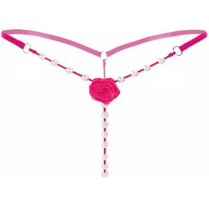 きらきら輝く薔薇とおしゃれな真珠が、サテンの色とフェイクパールで作られたTバックショーツに付いているよ!お嬢さんにぴったりの、エレガントなアイテムよ!ウエストのゴムは、体にぴったりフィットしてかわいいよ!