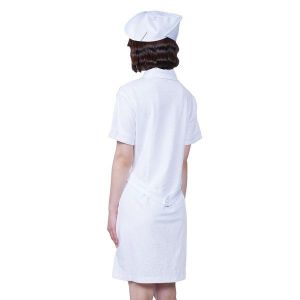 さん服だよ!ナースさんってかっこいーの!でも、この服は光沢サテンでなめらかで、白い色がとってもきれいだよ。たぶん、ナースさんたちは大きな病院で働いてる時に着るんだね!