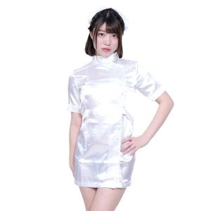 さん服だよ!ナースさんってかっこいーの!でも、この服は光沢サテンでなめらかで、白い色がとってもきれいだよ。たぶん、ナースさんたちは大きな病院で働いてる時に着るんだね!