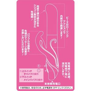 びーズがぐるぐる動いて気持ちいいバイブがあるよ!可愛い見た目で女の人に人気だよ。子バイブは先端が丸くて全部が快感になるよ。振動パターンは7種類あるから、好きなのを選んでね!シンプルからランダムまでいろんな快感が楽しめるよ。USB充電で便利だよ。90分使えるし、収納袋もついてくるよ。操作は簡単!スイッチを押したら振動が変わるよ。止めたいときはスイッチを3秒押すといいよ。水に濡れてもOKだから、お風呂でも使えるよ!