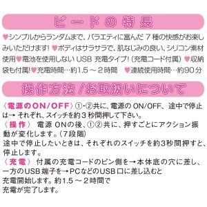 すごいバイブがあるんだよ!ビーズが上下に動いて刺激されるの!デザインもおしゃれ♪先っぽが細くなっているから、ピンポイントで気持ちいいところを刺激してくれるんだって!振動の種類も7種類あるよ!肌触りも良くてUSB充電だから便利だよ!90分も使えて、水にも強いからお風呂で使える!電源のON/OFFもスイッチを3秒間押すだけで簡単!振動もスイッチを押すたびに変わるから楽しいよ!