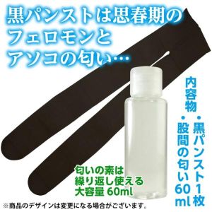 まずは、黒パンストの匂いボトル60mlがついてるんだよ! 思春期の女の子の蒸れた匂いを完全再現した匂いだから、まるで同級生の娘さんとイチャイチャしてるみたいな気分になっちゃうよ♪ そして、お得なセットで黒パンストもついてるんだ♪ それでね、あの娘の黒パンストでお家でチンポをこすりたいって思ったら、すぐに使えちゃうんだよ!